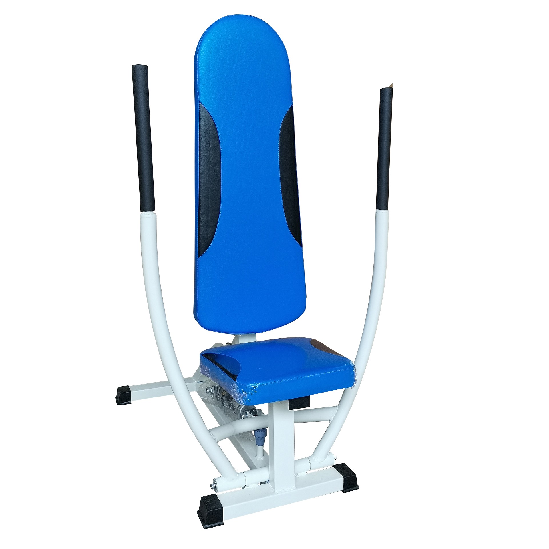 4、开始姿势:双脚与肩同宽,脚掌紧贴地面,臀部紧贴座椅,肩胛骨紧贴靠垫,过程保持脊椎良好体线(收腹、肩胛骨内收下压、背打直、收下巴), 眼睛直视前方,双手握住握把。